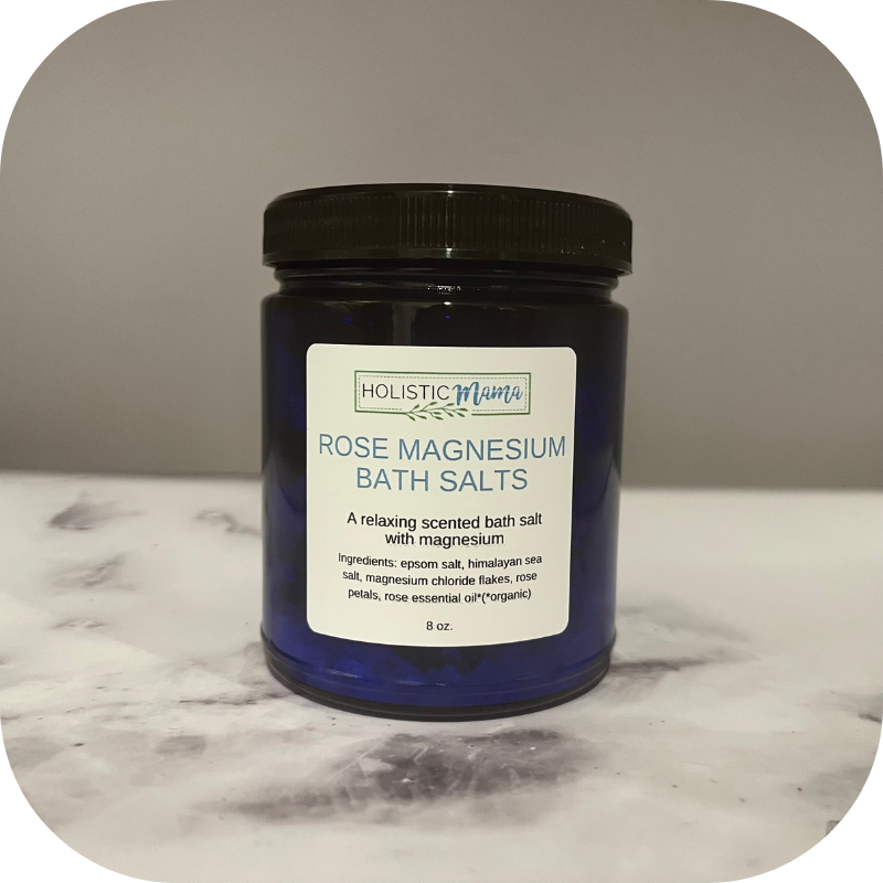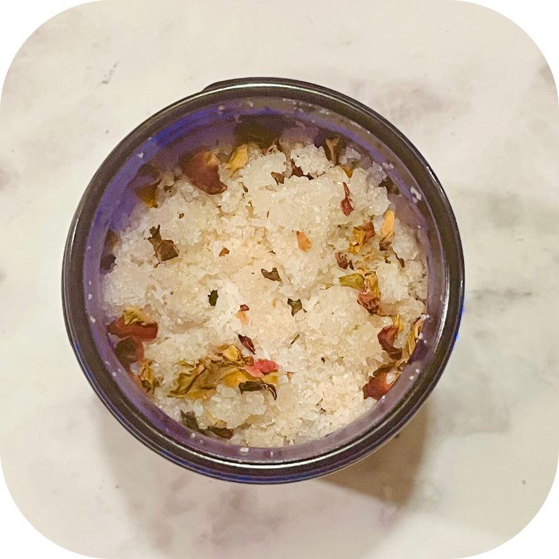 Rose Ingredients: Epsom salt, Himalayan sea salt, magnesium chloride flakes, rose petals, rose essential oil